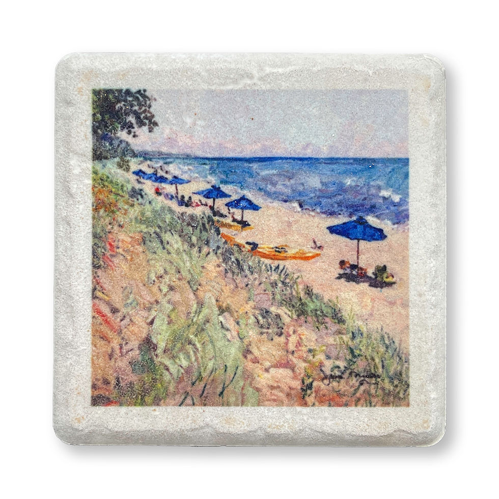 Our selection of art coasters are made of porcelain and feature tumbled edges and a cork backing. Coasters measure 4" x 4" and are made in the United States.